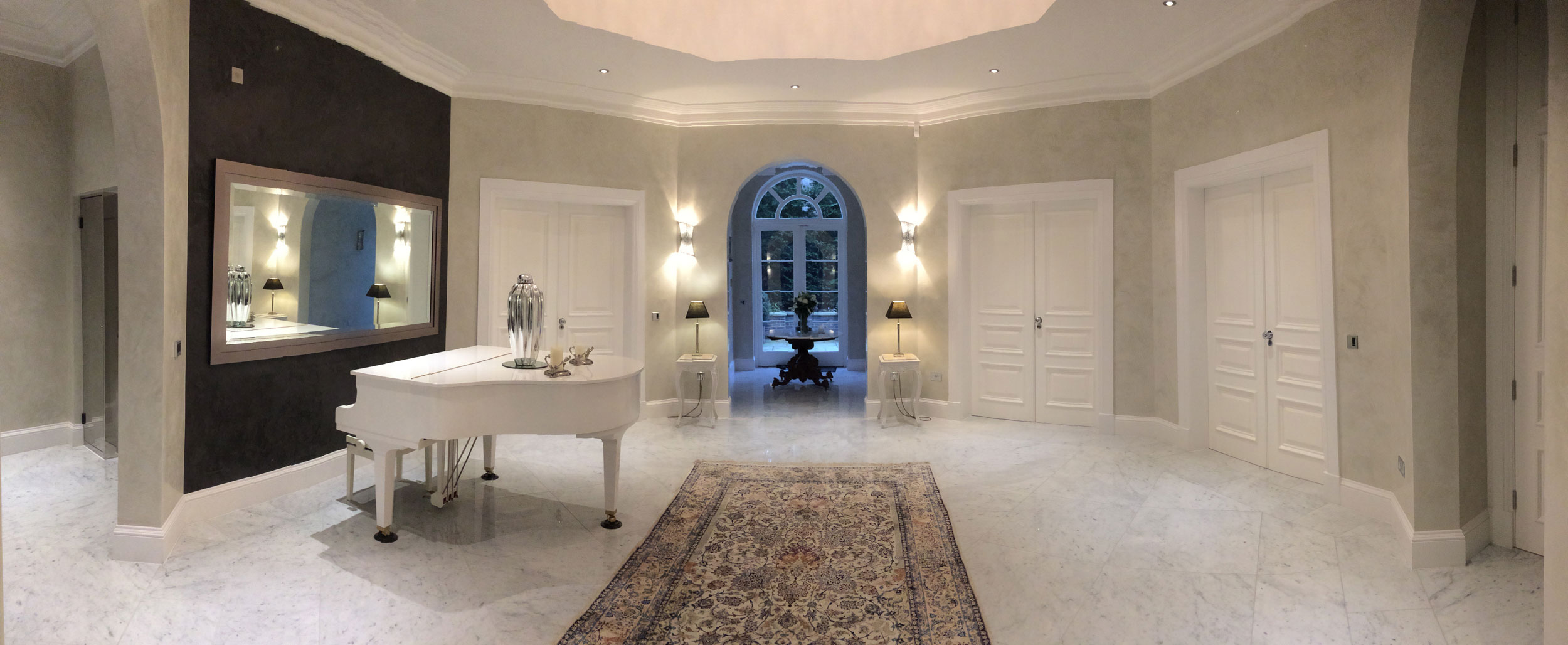 Lighting control is Lutron Homeworks in all the principal rooms, only the minor bedrooms are on conventional switching. Our client uses the Lutron connect application on his iPad to great effect both when at home and when away.