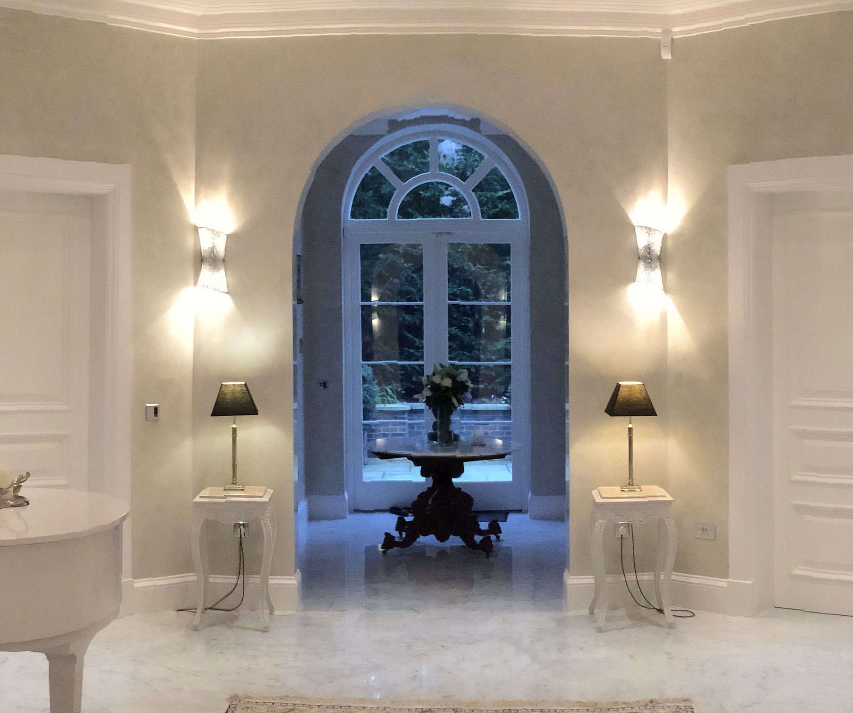 Lighting is mostly simple downlighters, but using the best quality dimmable LED lamps available from Bell, however coffers were used in the principal rooms lit by LED strip with great effect.